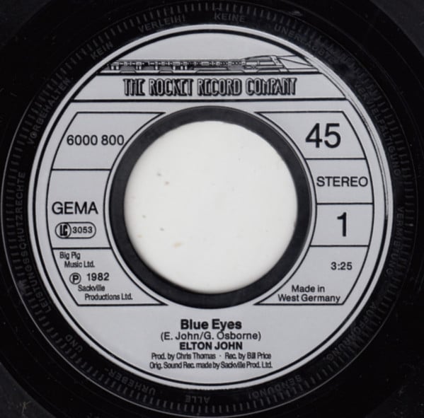 Elton John – Blue Eyes (Vinilo, 7″, Ed. Alemania, 1982)