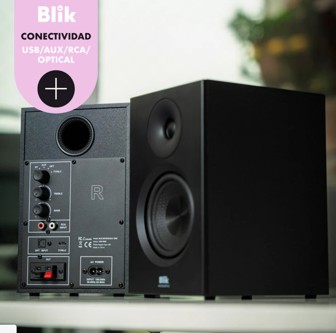 Par Parlantes Hi-Fi Bluetooth Blik Bookshelf One (70W RMS, Activos, Ecualizador, RCA)