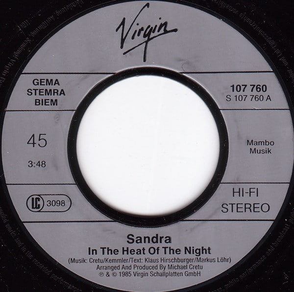 Sandra – In The Heat Of The Night (Vinilo, 7″, Ed. Europe, 1985)